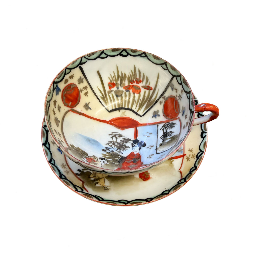 Vintage Hand-Painted Japanese Porcelain Teacup & Saucer